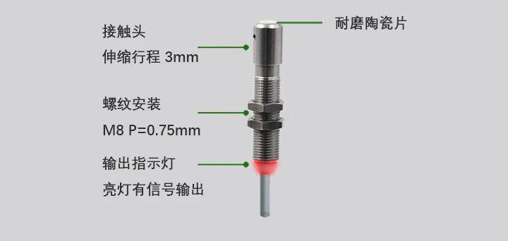 ECOTTER自主研發(fā)了接觸式傳感器S2-CS078和探桿式S2-CS089系列,常用于接觸檢測、原點定位等工業(yè)自動化場景,S2-CS078接觸面帶耐磨陶瓷片,產(chǎn)品使用更長久。