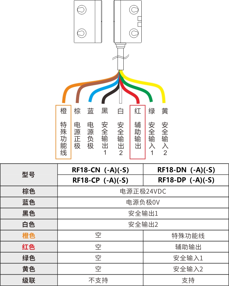 特殊功能線(xiàn)設(shè)計(jì),是用于唯一編碼的感應(yīng)器和執(zhí)行器重新配對(duì)。我們?cè)谑褂冒踩T(mén)開(kāi)關(guān)的時(shí)候,選擇唯一編碼可以最大程度的限制感應(yīng)器的觸發(fā)條件,以提高安全性,但是現(xiàn)場(chǎng)可能由于各種原因,無(wú)法找到與感應(yīng)器配對(duì)的唯一執(zhí)行器,或現(xiàn)場(chǎng)裝亂了。