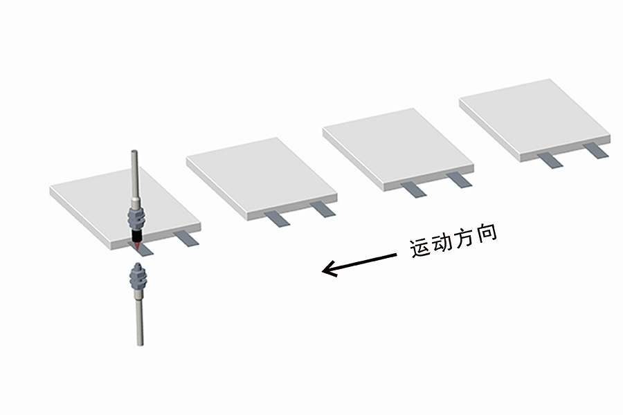 光纖放大器加對射光纖的解決方案,是在電池通過對射光束時,對兩個電池極耳兩端的四個點進行信號收集,從而確定電池極耳的位置以觸發(fā)焊接動作。