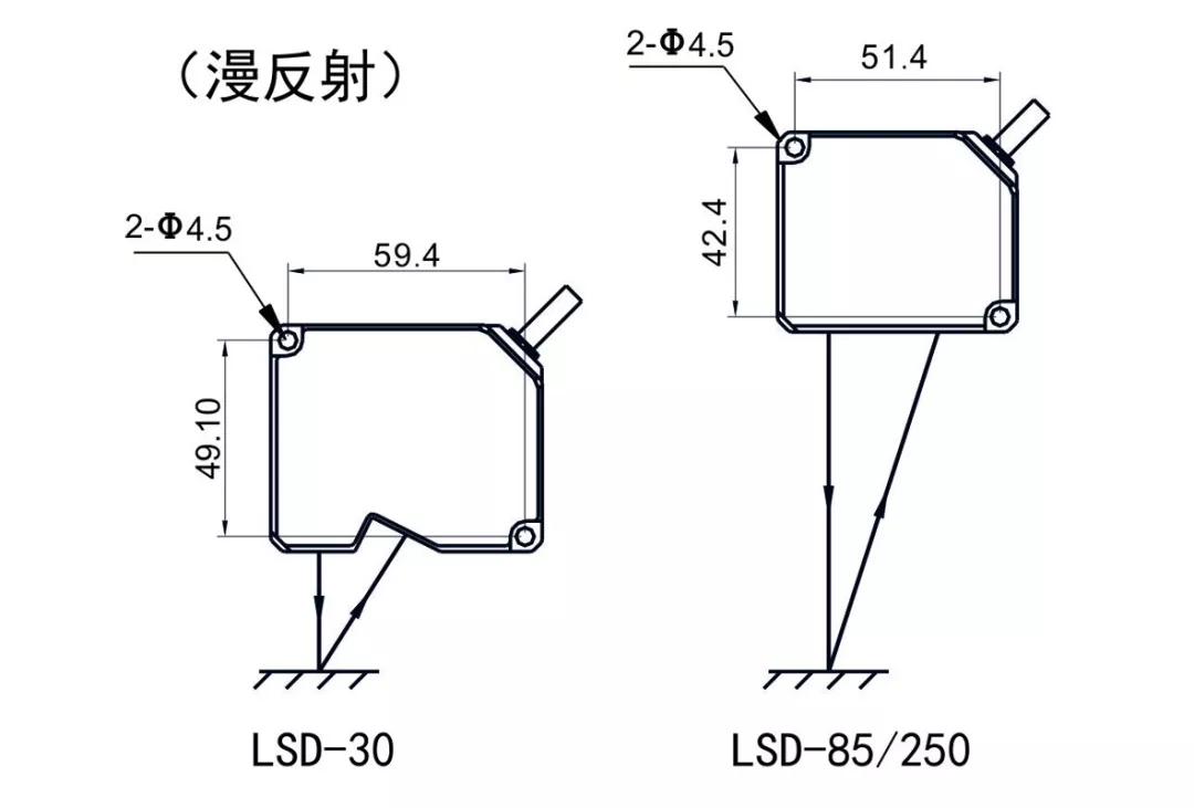 對(duì)鏡面反射表面的檢測(cè),請(qǐng)保證投光部的面與測(cè)定對(duì)象物成一定夾角,使發(fā)射的激光經(jīng)測(cè)定物反射后進(jìn)入受光部。