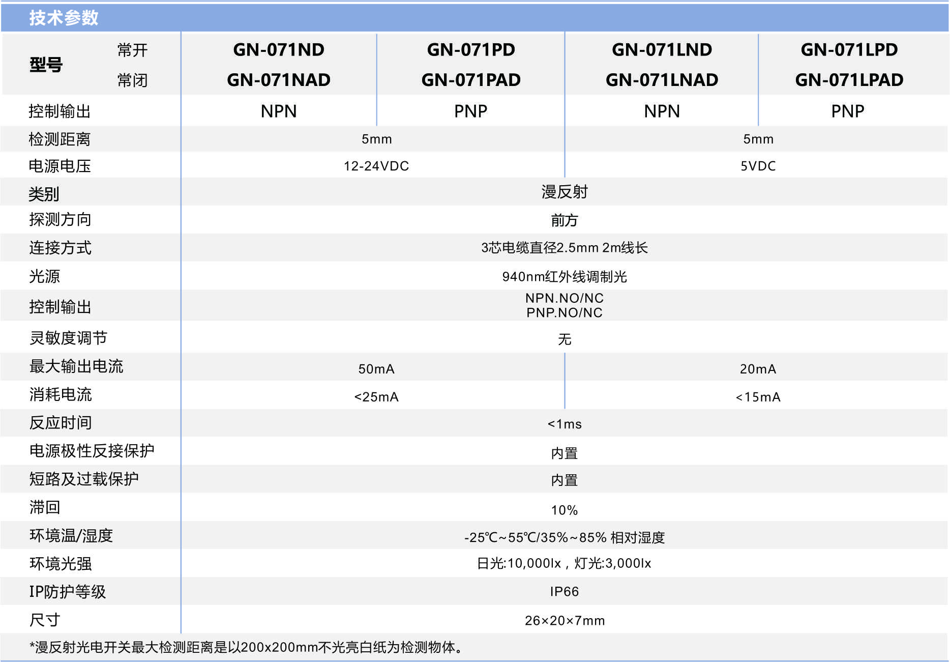 首頁 > 產品中心 >>傳 感 器 >> 光電開關 >> 光電開關傳感器GN-071系列