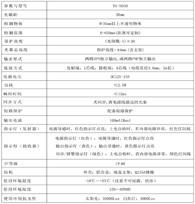 四級(jí)安全光幕超薄型TG-ND-30系列