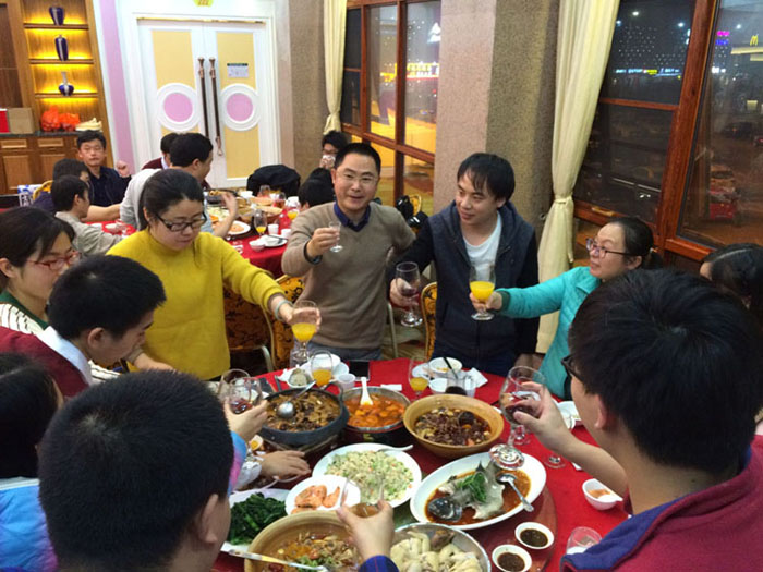 晚會(huì),開始楊總就為我們總結(jié)過(guò)去,展望未來(lái),同時(shí)帶領(lǐng)我們?yōu)榱颂旃み@個(gè)大家庭的親情、友情、恩情一起舉杯歡飲。
